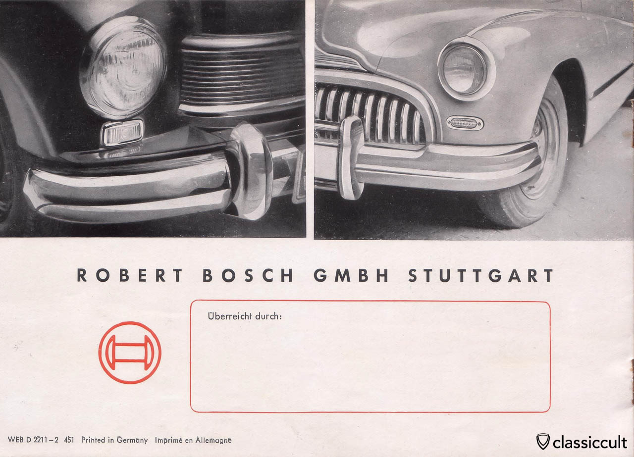 This is a very early Bosch Turn Signal Brochure from 1951 with light parts for Volkswagen Split Beetle.